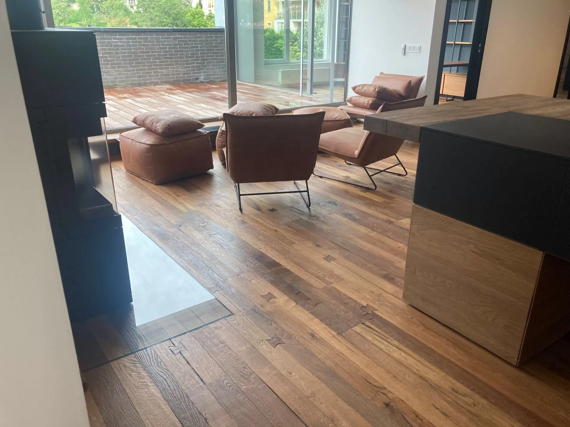 | Povrchová úprava | hoblovaný, postaršený, kouřový, fáze na 4 stranách, přírodní olej |